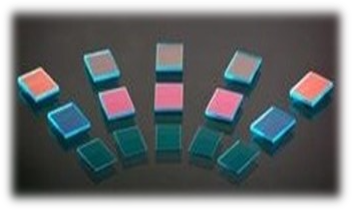 Multi-layer quartz crystal filters for CCD sensors, supplied for major Japanese-brand professional camera lenses.